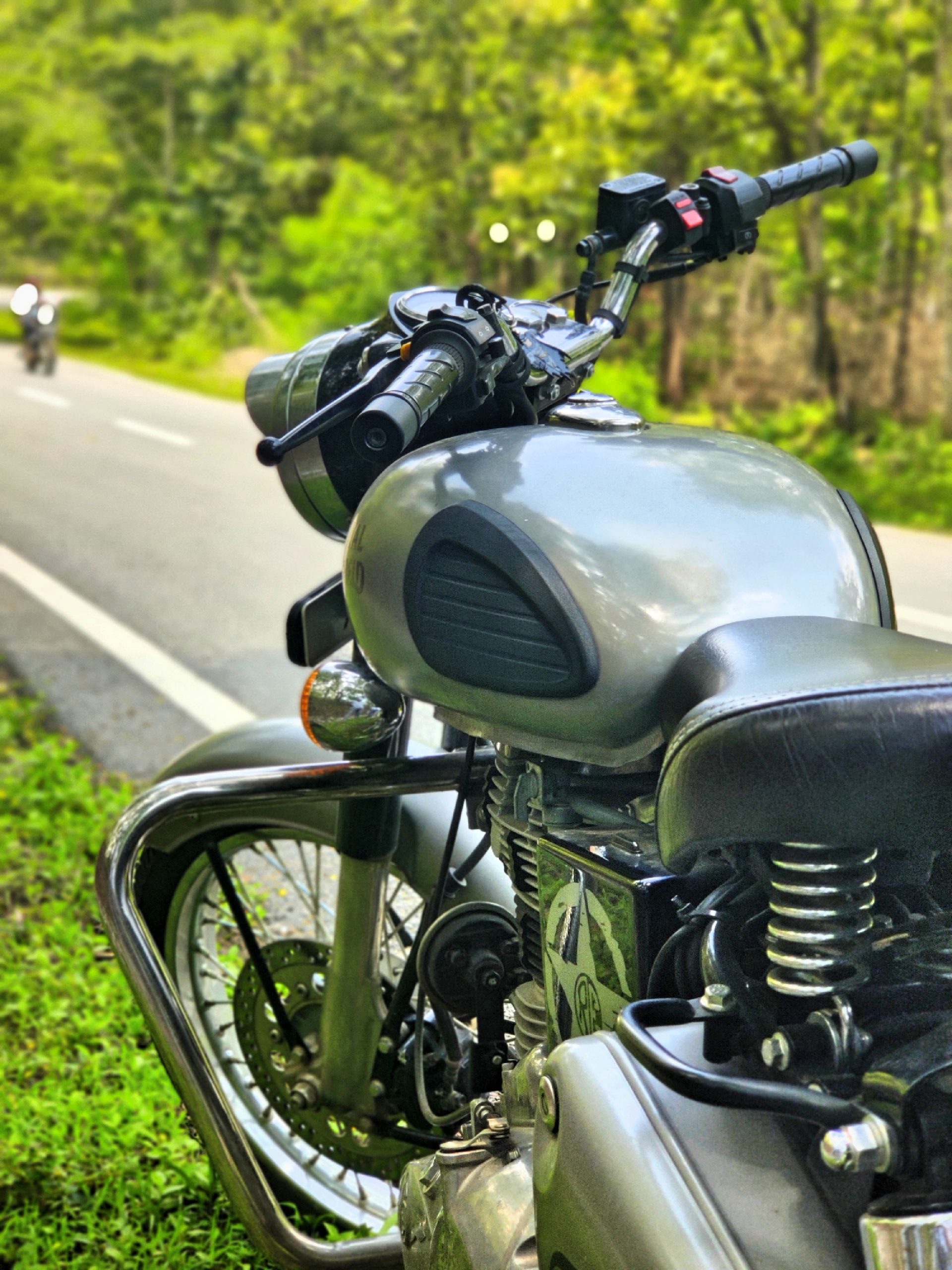 A man on a Royal Enfield bike